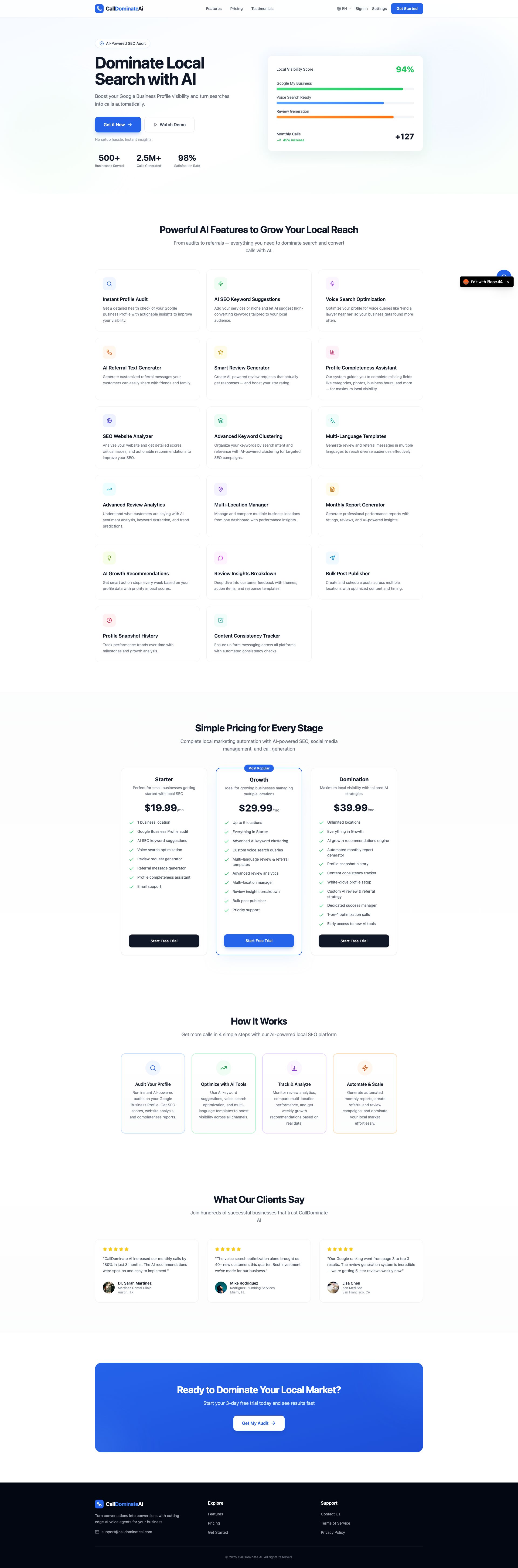 Local service businesses don't want impressions; they want their phone to ring. We built Call Dominate AI as the ultimate local growth engine. By auto-managing Google My Business postings, automating review capture from satisfied customers via SMS integrations, and tracking all inbound calls to specific campaigns, we successfully created a closed-loop system that proves explicit ROI to business owners, generating millions of inbound customer calls.